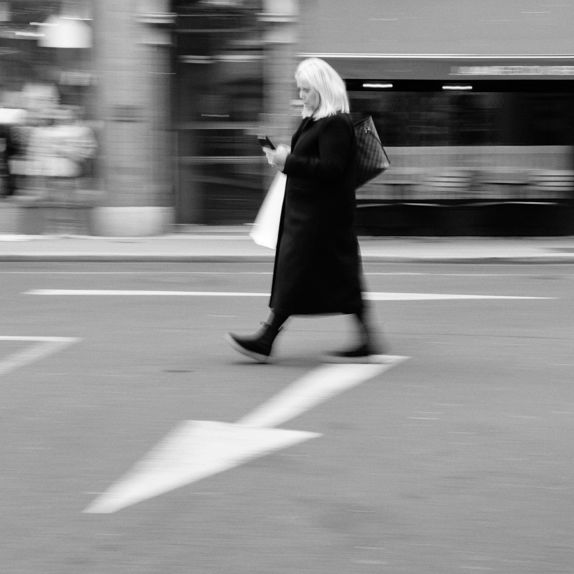 Others register as mass and trajectory – not individuals but forms, obstacles to navigate. Bodies are sensed just long enough to adjust course – a slight turn, quickened pace, protective gesture – before attention retreats inward. The camera operates from inside the condition it describes, navigating the same proximity and evasion.