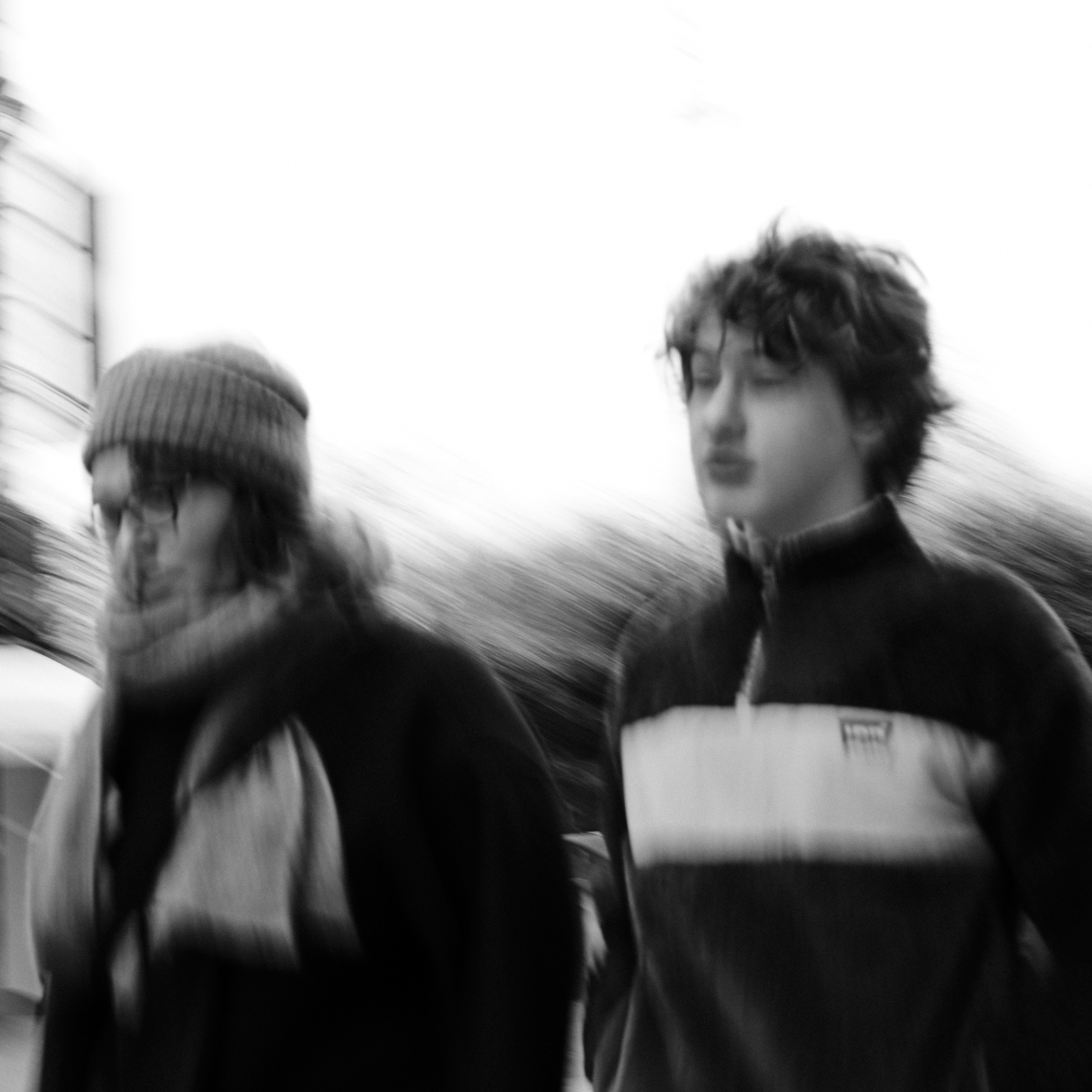 The formal language performs this split through compression (invasive closeness, hard contrast) and dissolution (motion blur, spectral figures, optical erasure). These alternate across the sequence, mirroring how I self-regulate in public – momentary alertness followed by inward retreat.